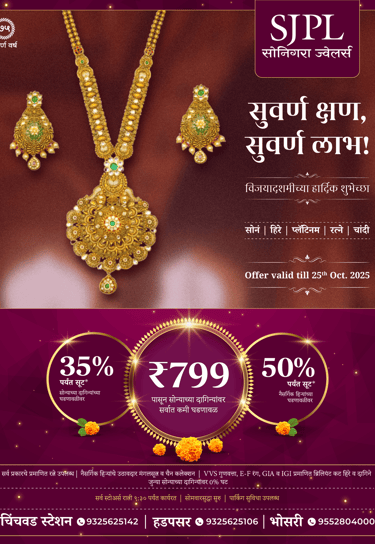तर आजच आपल्या SJPL सोनिगरा ज्वेलर्सच्या नजीकच्या स्टोअरला नक्की भेट द्या.